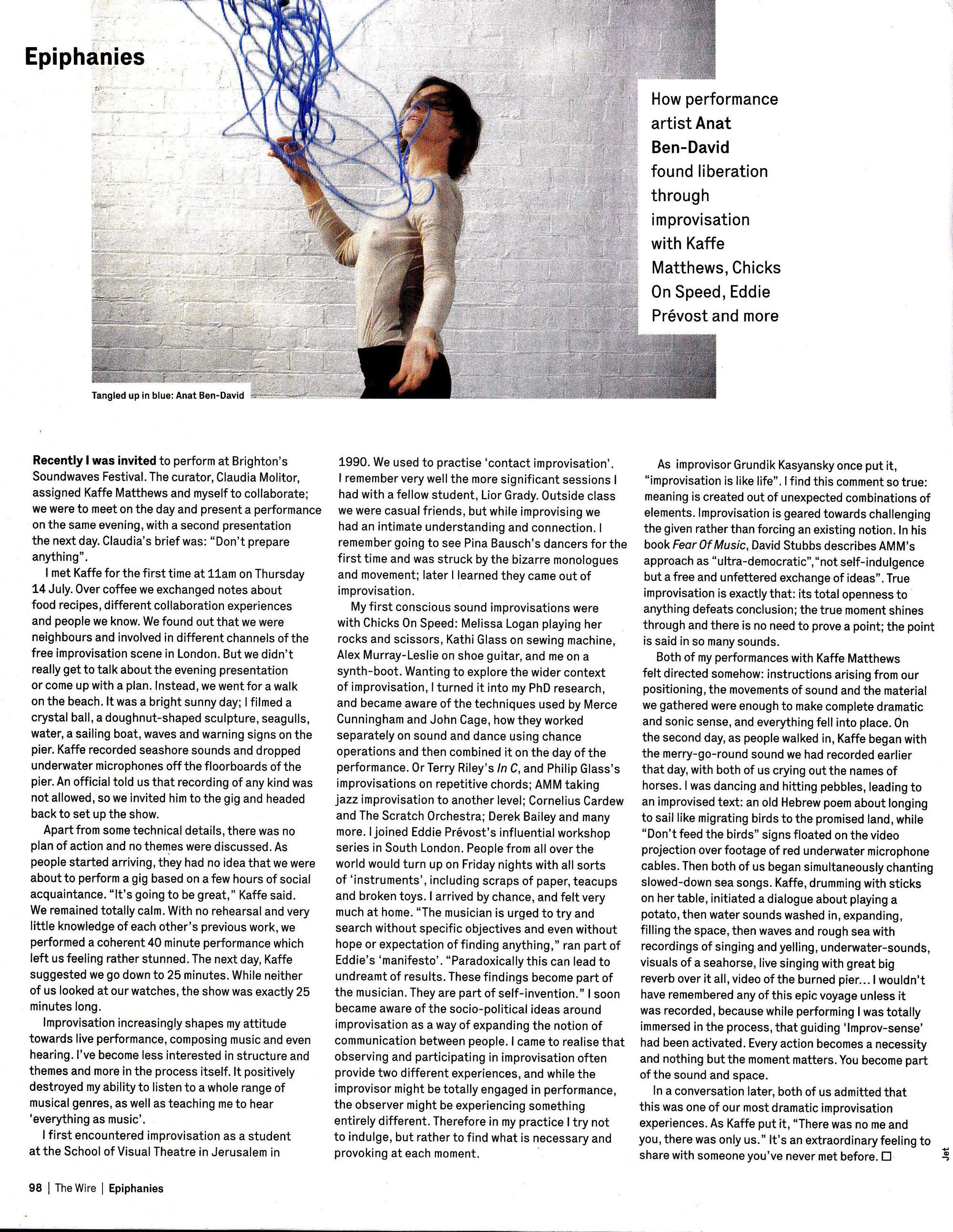 Anat Ben-David CV(PHD commenced October 2010) 23 October 2010: Solo Performance at NSK Conference at Haus der Kulturen der Welt, Berlin, Germany. 13 November 2010: Life is Life, What is queer about queer pop? Solo performance at HEBBEL AM UFER, Berlin, Germany. Jan 28, 2011: Prototype Hits first run, with Alex Murray Lesley for - Girl Monster 12: at kampf Nagel, Hamburg, Germany. Jan 29, 2011: Prototype Hits first run, with Alex Murray Lesley for – Girl Monster 12: FFT, Düsseldorfe Germany. Feb 17, 2011: Dirty electronics workshop with John Richards and performance at the ICA, London, UK. FEB 28, 2011: Workshop Concert Series, Free Improvisation, At café Oto London. March 5,6 2011: As Alike as Trees, New Sounds Uncovered, Free Improvisation, the Rag Factory, London, UK. March 21-29, 2011: Prototype Hits residency at L’STRUCH Barcelona in Collaboration with Alex Murray Lesley, Barcelona, Spain. May 14, 2011: Dirty Electronics workshop – the Mute synth at Short Circuit festival. London, UK. 10 September until 23 October, Chicks on Speed – Cultural Workship Now, kunstraum kreuzberg, Berlin, Germany. August 20, Supernormal festival, collaboration with John Richards Aka Dirty Electronic, Oxfordshire, UK. 10 September until 23 October, Chicks on Speed – Cultural Workship Now, kunstraum kreuzberg, Berlin, Germany. 29 September Hountology event at Mercy Liverpool. 14- 23 November 2011: - Leading New media workshop at LE STRUCH Barcelona. 2012: 19 January 2012: Gala’s Invitation won- best fashion-film sound track, at Asvoff, Barcelona 2012: December 2011: Politics of Sound video- chosen for SPOR festival: performed on 12 May 2012 19 January 2012: Prize- Gala’s Invitation- best fashion-film sound track, at Asvoff, Barcelona. 14 Feb 2012: A Modest proposal: performance at the Showroom London, curated by Book works. 31st may 2012 at Café Oto, as part of Mercy event: Electronic voice Phenomenon. 4 July Moving forest 12 hour performance opera collaboration, at Chelsea College of Art Parade Ground 28 September live performance at Studio Voltaire, London, for Nicole Eisenman show. 5 november, live performance at Liverpool Biennale, for Mercy- "Electronc Voice phenomenon" 13 November, Performance at "Sound Silo" for Borealis at B.A.S, Bergen Norway. 7-13 December, "Screem" Album recording- collaboration with Chicks On Speed, residency and performance at ZKM Karlsruhe, Germany. 8 March, 'On Margate Sands' and 'AMuSe' premier at Borealis Festival, Bergen Norway. 2 March, 'A whole loads of rubbish' with Stuart McKenzie at the ICA for Published and be dammed.